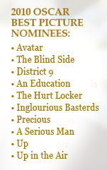 Three more days until Oscar time! I was going to publish my Oscar chatter post on my winner picks vs. predictions on the major categories, but allow me to digress. I had an email conversation earlier today with a colleague/friend of mine and she confessed how The Hurt Locker is not something she’d enjoy watching because she finds war movies really depressing. Then another colleague who might be going to see Precious with her friends told me she was a bit reluctant about it after reading about how some scenes might be too painful to watch. This is the same colleague who couldn’t keep her eyes open during A Serious Man last weekend. All three of those movies I mentioned are up for Oscar this year, which begs the question: are the Academy Best Picture nominees the kind of films that are really enjoyable to watch? What I mean by ‘enjoyable’ is that they’re the kind of flix that don’t make your skin crawl or depress/bore the heck out of you that you actually don’t mind, or even look forward to, watching them again.