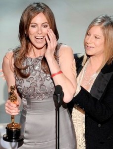 Bigelow makes history - Barbra Streisand introduces Best Director: Kathryn Bigelow. Wow! She makes history tonight as the first female director to win Best Director. But seriously, all politics aside, and even as a woman who’s all about Bigelow breaking Hollywood’ glass ceiling and all, I think Cameron or Tarantino deserves it more.