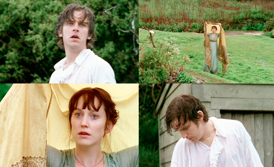 Well, since the first thing that came to mind was from 2005 Pride & Prejudice, I decided to list three of my favorite rain scenes from three other Jane Austen movies: