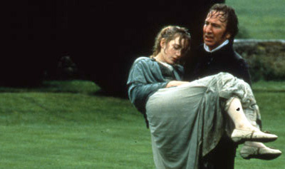 Oh how I love Alan Rickman as Col. Brandon! Forget the young ‘uns Willoughby (Greg Wise) and Edward Ferrars (Hugh Grant), Brandon is without a doubt my hero in this movie. The scene in the clip of the heartbroken Marianne (the astounding Kate Winslet) watching Willoughby’s estate from a distance is downright heart-wrenching, but the scene that follows is one of my favorites from the movie. Brandon’s profound love for Marianne is all the more evident in his face as he carries her lifeless body back into the house. It’s such a dramatic contrast from the first ‘rescue’ scene of her by Willoughby in the beginning of the movie. Instead of two people being smitten with each other, they are now both tormented souls stricken by a lost love.