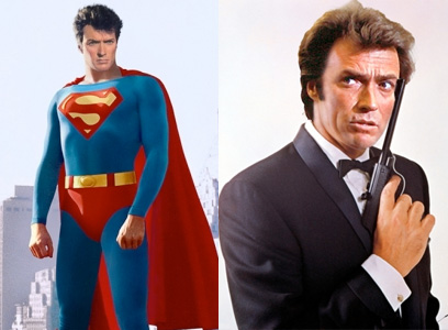 L.A. Times Hero Complex blog recently featured a post saying that screen legend Clint Eastwood was offered the role of both Superman AND James Bond. Whoever did the Photoshop work of Clint as both characters did a pretty darn good job, but I’d say the 80-year-old actor is wise for turning them down. I mean, I just can’t see him in those roles, and Mr. Eastwood himself said, “‘Superman? Nah, nah, that’s not for me.’ Not that there’s anything wrong with it. It’s for somebody, but not me.”