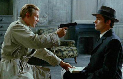 Well, that description is positively spot on. Costello is a free-agent assassin who brought the silent-but-deadly type to a whole new meaning. His glazed expression perfectly complements his impeccably tailored trench coat and stylish fedora… it’s as if they’re tailor-made to match his killer looks. I don’t think I’ve ever seen a man wore a classic trench coat as flawlessly as Delon here, in fact, the style of this movie can spark a whole new blog topic on its own. Not just for Costello’s clothes and his spartan-like lifestyle, but also Jean-Pierre Melville’s stylish noir direction. Right from the beginning, we’re told that the main theme of this movie is solitude… “There is no greater solitude than that of the samurai unless it is that of the tiger in the jungle… Perhaps…” so says the quote attributed to an ancient samurai writing Bushido (though the quote is by Melville himself).