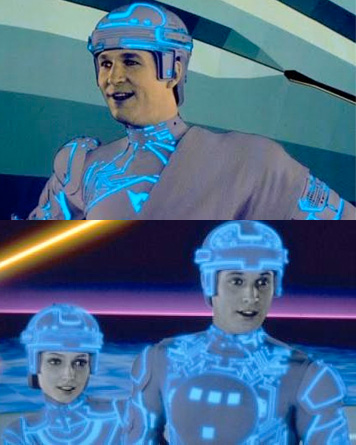 It’s pretty amusing to see the then 30-something Bridges and Boxleitner (who was the star of one of my favorite 80s show Scarecrow & Mrs. King) so young and fresh-faced. Bridges especially has that mischievous playfulness about him that’s so fun to watch. Both actors are reprising their roles in the new  movie, but of course the real star of the new show is the spectacular visuals, especially of those glowing lightcycles! 😀 A few street-legal replicas of those are apparently for sale. But before you shell out $55 K, keep in mind that these things—like Batman’s Batpod—only looks cool if you ride ’em fast (even better if you have a cape on you, too :D). The guy in the video is barely able to mount the thing, kinda looks ridiculous if you ask me 😀
