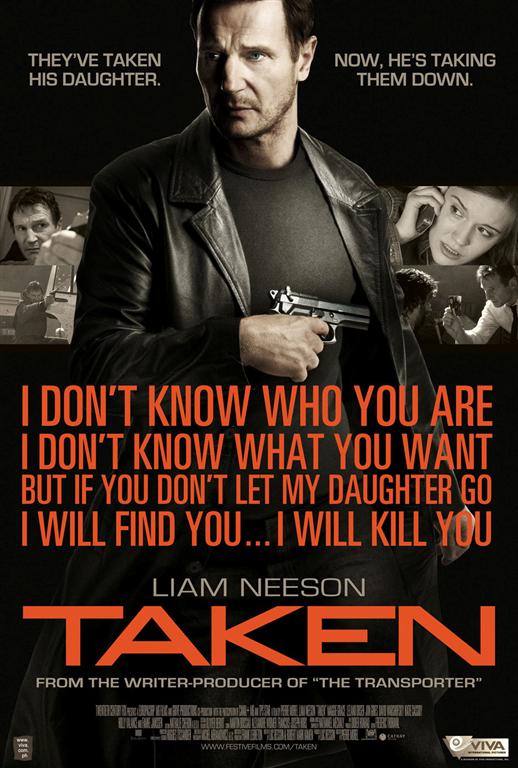 I saw Taken over the weekend. It wasn’t planned or anything, it was Saturday evening and we were checking what’s available Amazon Video on Demand. The only thing I’ve heard about Taken was that it’s Liam Neeson going the bad-ass action hero route, so more Qui-Gon Jin and less Oskar Schindler. Well guess what, I enjoyed it. A lot. Sure the beginning is kinda slow and Maggie Grace was freakishly annoying as his kidnapped daughter, but I totally bought Neeson as Bond + Bourne on steroids. Funny how the poster features his quote from the movie. Cheesy though it may be, I thought it was pretty cool when he said it. By the end of it I immediately went, ‘All right! When is Taken 2 coming out?’ 😀
