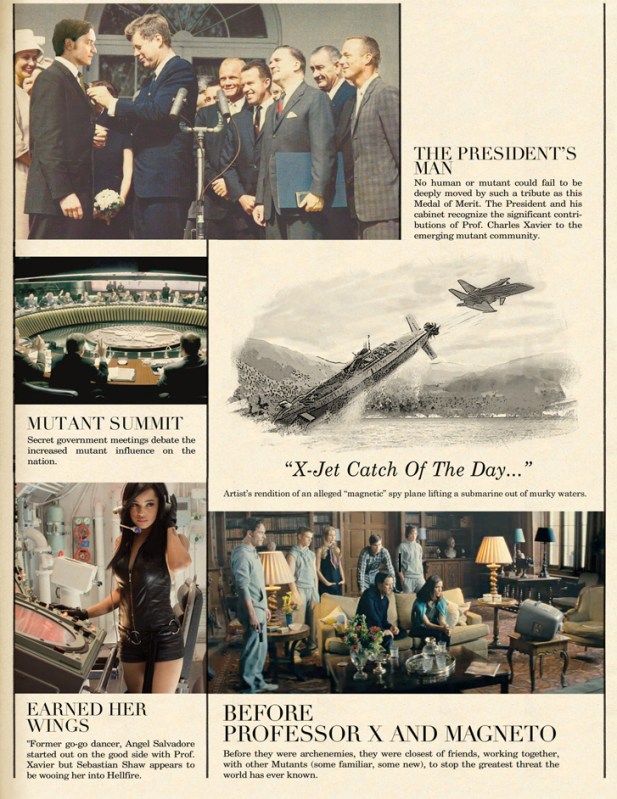 1. Ha..ha.. yeah, the Photoshop work aren’t great, especially the one with JFK shaking Xavier’s hand, I mean, his expression looks so fake! But still, I think it’s cool to see the history mixed w/ fiction, and yes, a period piece superhero flick is still pretty rare.