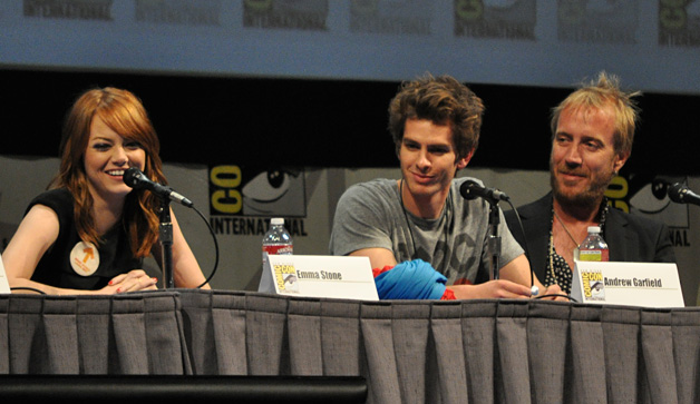 The panel consist of director Marc Webb, producers Avi Arad and Matt Tolmach and his co-star Emma Stone. Welsh actor Rhys Ifans joined them a few minutes later, looking disheveled and drunk, which I later learned that he was involved in a scuffle just moments earlier and was actually charged for battery! (per Yahoo! news) Well that explains his strange remark, “You never bring a monster to humanity, humanity brings a monster to you…” Huh??
