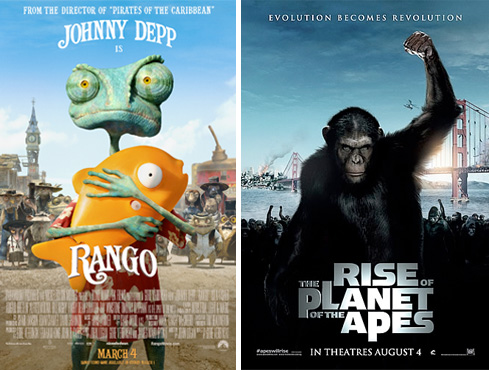 I watched Burton’s Apes remake back in 2001 and hated it. At the time it made me incredibly angry since I love the 1967 original soooooooo much. I saw Rango in theatres. Didn’t love it, but appreciated all the references, especially a Fear and Loathing in Las Vegas reference which flew over my head at first, until I got the DVD out and watched it again. Fun movie.