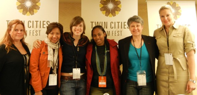 On Sunday, I was able to attend the Women and Filmmaking panel right after church. Minnesota Women in Film and Television Board Member Meighan McGuire mediated a panel of three women filmmakers, Elise Plakke (director of 14 Minutes shorts), Barbara Allen (director of Signing On documentary), Tracie Laymon (on of Girls Girls Girls directors).