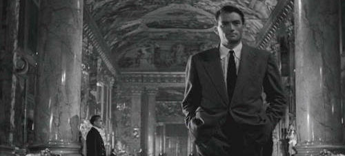 A lesser film would’ve ended with Princess Anne rushing out in haste, forgoing her royal duties to spend another day, a lifetime, with that irresistibly handsome newspaperman Joe Bradley. Yes that is what Joe desperately hopes for, and what WE the audience wants to have happened. Little did we know that director William Wyler will have none of that. So we wait… just as Joe waits for the palatial room to clear out. But he soon realizes she’s not coming out, so with a heavy heart he starts walking (that walk alone demands its own blog post, but that’s for another time). As he passes the two guards, he still takes a glimpse towards the stage once more. Empty. The music swells up, forcing us to realize they’re never going to see each other again. Joe keeps on walking towards the camera and disappears, carrying the memory of that day in Rome that he too will cherish for as long as he lives.
