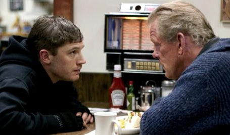As with The Fighter from last year, Warrior is not just a boxing (or UFC in this case) tale, it’s a family drama wrapped around this popular contact sport that’s as heavy on the fighting as it is on character development. The film opens with the father of the two lead characters, Paddy Conlon (Nick Nolte), getting out of a church in Pittsburgh and finding his long-lost son waiting for him when he gets home. Tommy (Tom Hardy) has not seen his dad in fourteen years. As the conversation between them progresses, we find out that they did not part on amiable terms. The opposite is true in fact, as evident in the way Tommy is distrustful of his former alcoholic dad’s reformed life. At times I feel like Tommy is too harsh with his repentant dad, but at the same time, the film hints of the immense transgression Paddy did to his own family.