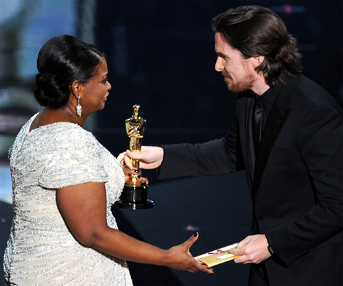 • Christian Bale looking so dapper (glad he shaved that unsightly beard from last year!) and using his own delightful accent presenting Best Supporting Actress award for the one I’m rooting for: Octavia Spencer, yay! Even miss Spencer acknowledged Bale’s hotness in her acceptance speech, ahah. But in all seriousness, I’m glad to see another colored person won an acting award. As I mentioned in my prediction post, there’s only been five black actresses who have taken home the statuettes. Now if Viola Davis wins again, that’ll make her the second winner!