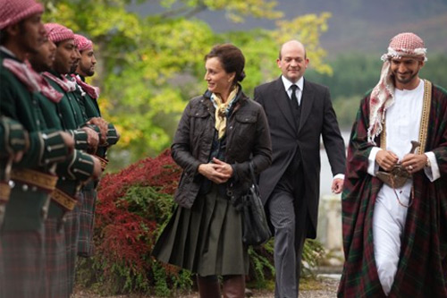 The casting is definitely a strong point here. McGregor and Blunt have a sweet chemistry together, and their slow-burn romance is wonderful to watch. Blunt has a more emotional performance here, which works pretty well against the more deadpan McGregor. I definitely enjoy seeing Scott Thomas in a comedic role as an over-zealous Britain Press Secretary. She’s so sarcastic it’s downright cruel, bossing everyone around including her own boss the Prime Minister. The iPhone chat between the two is pretty funny, but her reaction seeing the Arab guards dressed in Scottish kilts at the sheik’s castle prompted the most laughter, ‘Oooh, happy birthday Patricia!’