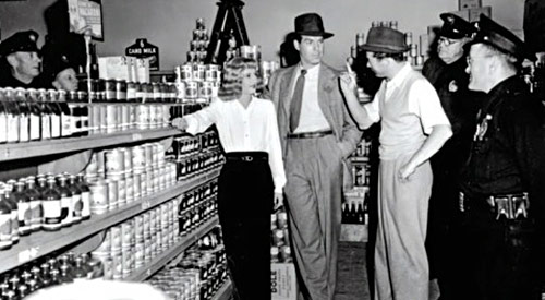 Ramping it up the sleaze and slime factor about four fold as Robbery Detective Paul Sheridan. Who starts out as honest and straight laced. A bit of of ladies’ man. Tipped to an opening scene bank robbery where people are killed and the robber, Harry Wheeler, fleetingly played by Paul Richards, escapes. Sheridan deftly disables the possible getaway car owned by robber’s moll, Lona McLane; sultrily played by Kim Novak in her debut role. Smoothly picks up Lona. Invites her for a drink and soon finds himself getting in over his head as Lona just as smoothly seduces Sheridan and suggests an easy way out with her and the bank’s stolen $200,000.