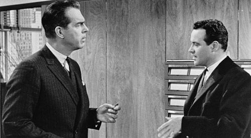 MacMurray’s personnel director, Jeff Sheldrake is at the pinnacle of his appointed ladder. Basically content and more than somewhat amoral. He quickly adds his own name to the list of executives young Baxter loans his close by apartment to for late night, off the books assignations. Sheldrake dangles shiny totems and talismans of advancement before Baxter eyes. Private office and perks. While carrying on an affair with elevator girl, Fran Kubelik. Realistically brought to life by Shirley MacLaine.