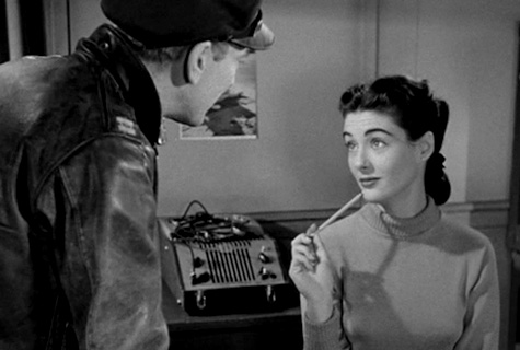 In other word, business as usual. Maintaining an even strain in less that spartan conditions that would send other lesser mortals screaming back home to mother. Yet, Bonnie toughs it out. Trading quips and barbs with Geoff as more is revealed. Even when Barnstorming pilot, Bat Mac Phearson shows up. Evading a checkered past that involved the death of Geoff’s best friend. Seeking a job and acceptance with his wife, Judy (Rita Hayworth) in tow. A bad omen if there ever was one. Since Judy was once an old flame of Geoff’s. All the pilots refuse to fly with Bat. So Judy begs Geoff for a chance. Geoff cedes that Bat can fly, but only the most dangerous flights.