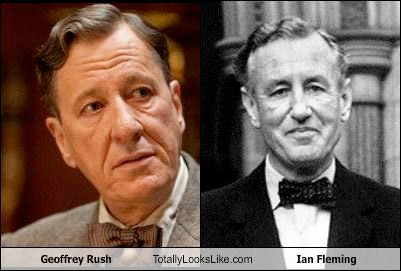 I haven’t heard of who’d be cast as Fleming. I think I heard James McAvoy was rumored at some point, which would be a good choice I think, aside from the fact that Fleming has Scottish roots. Now if they decide to do a biopic on his later years though, I’d love to see Geoffrey Rush play him. I mean, I even found this photo when I was searching on Google, so obviously I’m not the only one who think of their uncanny resemblance!
