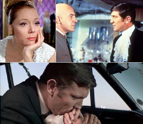 Back to Lazenby though, I don’t think he’s a terrible Bond, he just doesn’t seem all that charismatic. He does have a lean, athletic physique and handles all the action and fight scenes stuff very well. He even looked manly wearing a ruffled shirt! Perhaps if he had done a couple more films, I might like him more than Brosnan but I guess we’ll never know. I quite like Telly Savalas as Blofeld, he’s not super menacing but not cartoon-ish either. Diana Rigg is fabulous as the beautiful and feisty Contessa Teresa ‘Tracy’ di Vicenzo, the kind of brain + beauty combo I like, just like Eva Green’s Vesper. Now I know why my friend Michael likes Rigg so much 😉