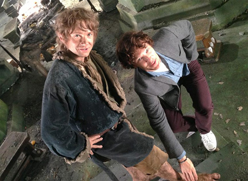 Even Smaug couldn’t resist Bilbo’s feet! [Benedict Cumberbatch & Martin Freeman on set]