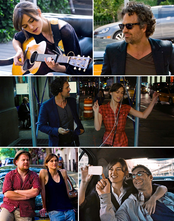 BeginAgainStillsThe film is told partly in parallel between the two characters, giving us a glimpse into their lives and how they intersect. The acting felt so natural and right away I connected with the two leads and their journey. This might be one of my fave Keira Knightley‘s performances and nice to see her portraying a plain and relatable girl, a role she seems to relish and have fun playing. Ruffalo is a reliable and charming actor and he’s just so likable and endearing here even at the moment of a life crisis. He embodies an artistic and idealistic guy who can *see* and feel music so deeply and he’s so convincing at it. The film took us on a ride with Dan & Greta sharing music on their iPods and hanging out together around NYC (which could double as the city’s tourism video). Music is infused throughout the film and so there are lovely musical moments here. Two of my fave scenes are featured in this week’s music break, but there’s also a fun one when the group play on a rooftop.