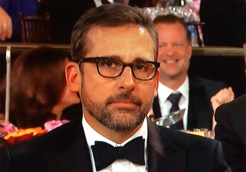 “Steve Carell is here tonight, for Foxcatcher. In Foxcatcher, Steve Carell plays a paranoid, murderous billionaire. The role was a stretch for Carell who in real life is a paranoid, murderous millionaire.”