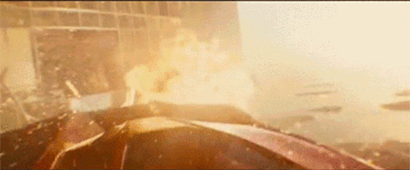 Yep, that’s the red car that Dom and Brian (Paul Walker) drove through two skyscrapers you’ve seen in the trailer. Trust me, the scene itself is even crazier than in the trailer! Brian Tyler‘s dynamic score perfectly complements the action scenes.
