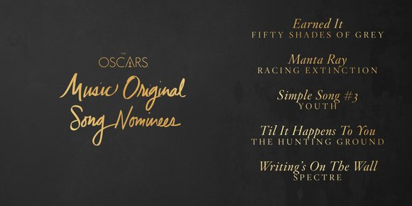 • Ok now, Writing’s On the Wall for Best Original Song?? REALLY?? Heh, I think the melody of the song is nice but gah, I can’t stand Sam Smith’s whiny voice and now it sounds like we’d all have to listen to him sing at the Oscars ceremony! Of ALL the years to recognize a Bond song, the Academy chose the most-maligned one that sounds more like writhing on the wall.