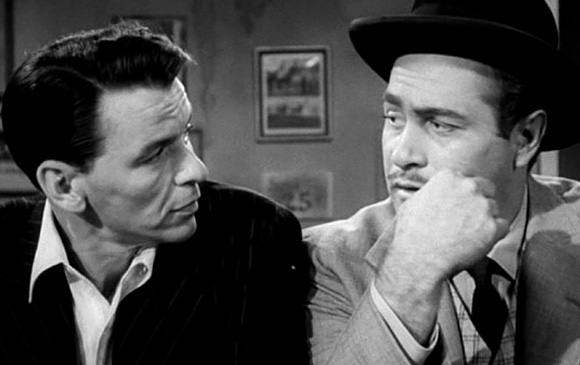 Now. Anyone of Mr. Sinatra’s popularity requires a nemesis of equal or greater lousiness and slimy evil. And Mr. McGavin’s drug dealer and low rent pimp with an elegant “Boston Blackie” mustache more than fills the bill. Patient to a fault and quietly mobile. Seeing all sorts of opportunities along filthy streets and dark allies. Nearly invisible and incredibly confident that Mr. Sinatra’s Frankie Machine will screw up sometime soon. And come knocking at his door for a fix.