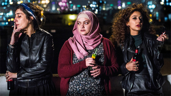 In Between follows the lives of three Palestinian women sharing a flat in Tel Aviv. Layla (Mouna Hawa), a carefree party girl by night and shrewd lawyer by day, has recently started a relationship with a young man whom she eventually realizes isn’t quite as accepting of her wild lifestyle. Salma (Sana Jammelieh), a bartender with dreams of being a famous DJ, suffers through her conservative Christian family’s attempts at finding her a husband while she develops a romance with another woman. Nour (Shaden Kanboura), a devout Muslim and university student working toward a degree in computer science, struggles to maintain her independence and work toward her own dreams while her controlling fiance pushes her to abandon her big city life for an obedient, domestic one.