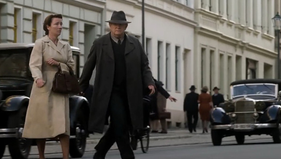 Based on real events, the story opens in a small flat in Berlin where Otto Quangel (Brendan Gleeson) and his wife Anna (Emma Thompson) learn that their son has died in battle. In a long marriage that is under strain, the news pushes them further apart as they cannot console each other in grief. Otto had encouraged his son to join the Nazi army and now Anna blames him for their loss. Desperate to voice his rage against Hitler’s regime, he painstakingly writes postcards and secretly leaves them on stairwells and doorways where they can be seen by passers-by: he calls them “small grains of sand in Hitler’s machine”. Initially he keeps Anna away from his dangerous mission, but she insists on being involved and they both become clandestine resistance fighters whose weapons are simple messages about the evils of Nazism. They manage to write and distribute over 260 cards despite extensive investigative efforts to stop them. In the process, they resurrect their marital relationship. After almost two years of card-writing they are caught and together face Nazi justice.