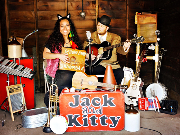 Jack and Kitty are high school sweethearts that play Organic Vaudeville and Jug Band Folk for All Ages. They are an Emmy Award winning musical duo that also makes critically acclaimed films and television. Based in Minnesota, they love to perform concerts nationwide and play a variety of folk instruments including: banjo, guitar, ukulele, washboard, jug, kazoo, harmonica, whizbang, rumba box and much more. The Minneapolis Star Tribune hailed them as “one of the most entertaining groups in the midwest!”