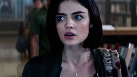In Truth or Dare, a group of college students (Lucy Hale as Olivia, Tyler Posey as Lucas, Violett Beane as Markie, Sophia Ali as Penelope, Nolan Gerard Funk as Tyson, Hayden Szeto as Brad, and Sam Lerner as Ronnie) go to Mexico for spring break, where they join a stranger from a bar, Carter (Landon Liboiron) to an abandoned church, where they play the movie’s titular game. What seems like an innocent activity is something much more sinister that follows them home and forces them to continue playing, answering heartbreaking truths and performing life-threatening dares. If they refuse to play, they die.