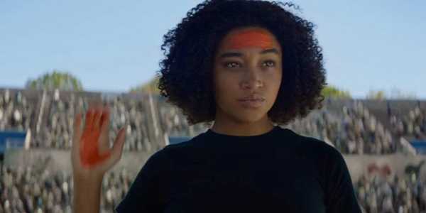 The main character in the movie is Ruby Daly (Amandla Stenberg) who has orange glowing eyes, but convinces a doctor that she is actually green, meaning that she is not killed but rather imprisoned to a child labor camp – which is unsurprisingly a total bummer. She gets smuggled out of the camp by a strange doctor named Cate Connor (Mandy Moore) who is a member of a group that fights against the government’s policies. Ruby does not believe her and escapes to find a group of three teens who just had escaped from another child labor camp – blue Liam (played by Harris Dickinson, who looks way too old to be a teenager), green Chubs (Skylan Brooks) and yellow Zu (Miya Cech). The four set off to find a secret camp, run by Clancy Gray (Patrick Gibson), who is the president’s son – a supposed good guy who helps escaped teenagers and shelters them away for government soldiers – and is also the only other known orange alive.