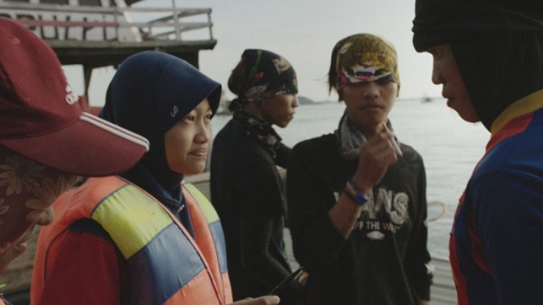 People have asked at screenings how did we get access to the pirate dredges, who gave us permission? And because it’s the type of environment that doesn’t have an organized “pirate tin miners association,” we really had to wing it. Our local field producer reached out in advance to some people in the area who had contacts on the dredges, but they all were a no show on the day of the shoot. We had already driven 3 hours before dawn to get to where the ships were, so we just headed out to sea with great hope. And the moment where they gave us permission to film is actually on camera. Nuha, who is this incredible combination of being brave, and also clear about her intention, just asked “Hey can we come aboard your ship?” and they said yes, and so we went. Who could tell her no?