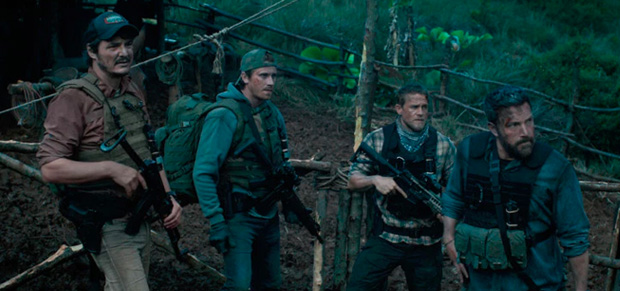 Instead of alerting FBI or DEA, Pope decided to take this upon himself to bring down Lorea. Well in order to do that, he enlists four of his former Special Forces buddies to join him on this dangerous mission. The film took a bit of time to introduce us to the team: Affleck’s Tom aka Redfly, William aka Ironhead (Charlie Hunnam) and his brother Ben (Garrett Hedlund), and Francisco aka Catfish (Pedro Pascal). Affleck’s basically a down-on-his-luck divorcee who’s been shot five times but now couldn’t even sell a condo to save his life. Despite being strapped for cash and concerned for his daughter, Redfly is the hardest for Pope to convince to join the mission… and for good reason.