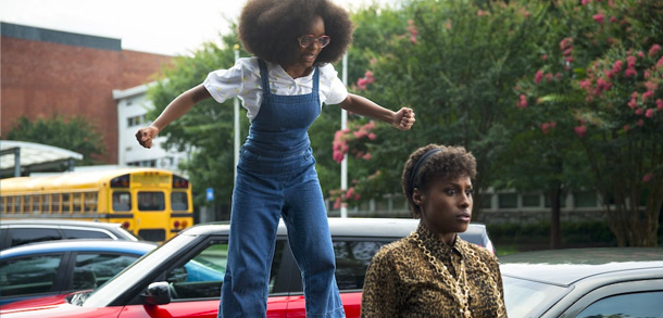 One of my favorite things about Little is the visual storytelling. April wears fun, bright clothing, and Jordan is completely chic as a grown up and a fashion explosion as a child. The contrast between April and Jordan is non-verbally expressed time and time again through clothing, make-up, and even their homes. We learn almost everything that we need to know about each character when we initially see April in her small, colorful studio apartment while she’s talking on the phone to Jordan, dressed in silks pajamas and roaming the halls of her swanky condo.