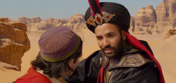 Now, as for Genie. The comparison with the iconic Robin Williams is inevitable, and Will Smith has such giant shoes to fill. But all things considered, I think his ‘Fresh Prince’ interpretation of the character surprisingly works. His Friend Like Me rendition has touches of hip-hop and it’s pretty catchy. The A-list star has an infectious energy that works perfectly as Genie, and some of the jokes (mostly directed at his naive master Aladdin) is genuinely funny. Massoud’s comic timing is adorable, playing up the state of being discombobulated to great effect. It mostly works as this version of Genie also has a good rapport with Aladdin and their relationship plays like an unlikely buddy-comedy with some emotional moments for good measure. I actually enjoyed Smith more when Genie is in human form, which shows up quite a bit in this movie.