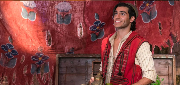 The opening sequence of Arabian Nights sets the right mood, though it took me a little while to get used to Will Smith‘s singing. By the time we meet Aladdin (Mena Massoud) in the streets of Agrabah with his loyal monkey friend Abu, I have a good feeling I’d enjoy the movie. The Egyptian-Canadian Massoud is instantly likable and is light on his feet as he runs, jumps, leaps from building to building while flashing his movie-star smile. He can sing too, his song One Jump Ahead is dynamic and fun, offering great views of the town.