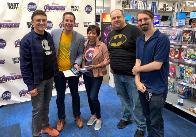 On Display at Best Buy were a few props from Endgame, including the broken Captain America’s shield at the hands of Thanos’ mighty sword.