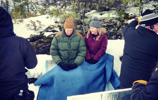 Yes, even though we filmed on location in International Falls in March we were still battling sub zero temperatures. We filmed on a frozen ice lake at Voyageurs National Park for 3 days and every day the park ranger had to come out and measure the thickness of the ice to make sure it was safe for us take all of our trucks out to the tiny island that served as our main shooting location. We had to put hand warmers on the camera batteries to keep them from shutting off. But our Twin Cities based crew was so amazing. They never complained about the cold or the long hours or the grueling work. It was such an awesome group of people, I am forever indebted to them.