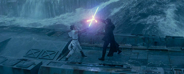 I barely have time to ponder on that as there’s a ton of stuff going on in this movie… the crew frenetically jumped from place to place in search of that Wayfinder thing-y, which eventually leads to the main battle between Rey and Kylo. No doubt the lightsaber duel of two crucial characters, on top of the remains of the second Death Star no less, looks epic. With the waves and torrential rain, it’s an atmospheric scene to be sure.  It’s got some wow moments, but overall the scene just didn’t have as big an emotional impact as I thought it would.
