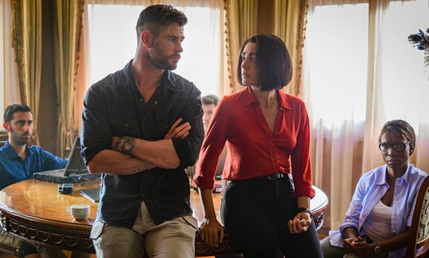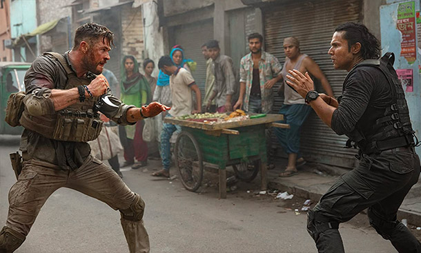 As the story begins, we’re introduced to Ovi (Rudhraksh Jaiswal), he’s the son of a ruthless drug lord named Mahajan (Pankaj Tripathi). Mahajan is in prison but still very powerful within the crime syndicate of India. While out partying with his friends at a night club, Ovi is kidnapped by men working for Amir (Priyanshu Painyuli), Ovi’s father rival. Upon learning the news that his son has been kidnapped by his rival, Mahajan orders his right-hand man Saju (Randeep Hooda) to do whatever it takes to get his son back alive. Saju hires a mercenary team whose leader is Nik (Golshifteh Farahani), she recruits her old teammate Tyler (Chris Hemsworth) to join the team in rescuing Ovi from danger.
