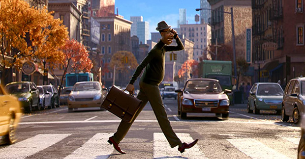 I love that Disney’s animated opening logo montage uses the music played by Joe Gardner’s (Jamie Foxx) middle-school students in his music class. It’s a fun and clever way to introduce the character in his environment. Now, it’s a special day for Joe as he’s been hired full-time by the school as a music teacher. Instead of being ecstatic, however, Joe actually feels down, as his dream has always been to be a jazz musician. His tailor-shop-owner mother, Libba (Phylicia Rashad) pressures him to accept the job as she wants him to be financially secure. As luck would have it, thanks to his former student, Joe suddenly got a chance to play in one of his favorite jazz quartet. He’s got close to finally living his lifelong dream that night when poof! he falls into a manhole.