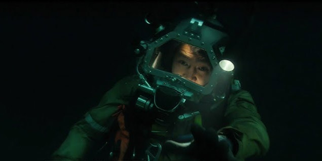We’re then introduced to Chris’ teammates, veteran diver Duncan Allock (Woody Harrelson) and Dave Yuasa (Simu Liu), and the three will share the submersible for the duration of the shift, which can last up to 28 days. Duncan is immediately warm and friendly, while Dave is a bit guarded; naturally, you deal with all kinds of personalities at the workplace. It’s a reasonably good set-up of a deeply human story, getting to know the characters briefly before we’re thrown into a gripping survival tale.